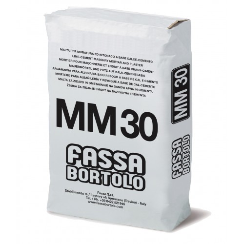 Apneno cementna malta Fassa Bortolo MM30 je suha pripravljena malta iz hidriranega apna, portlandskega cementa, izbranih vrst peska in posebnih dodatkov za izboljšanje obdelave in oprijemanja.