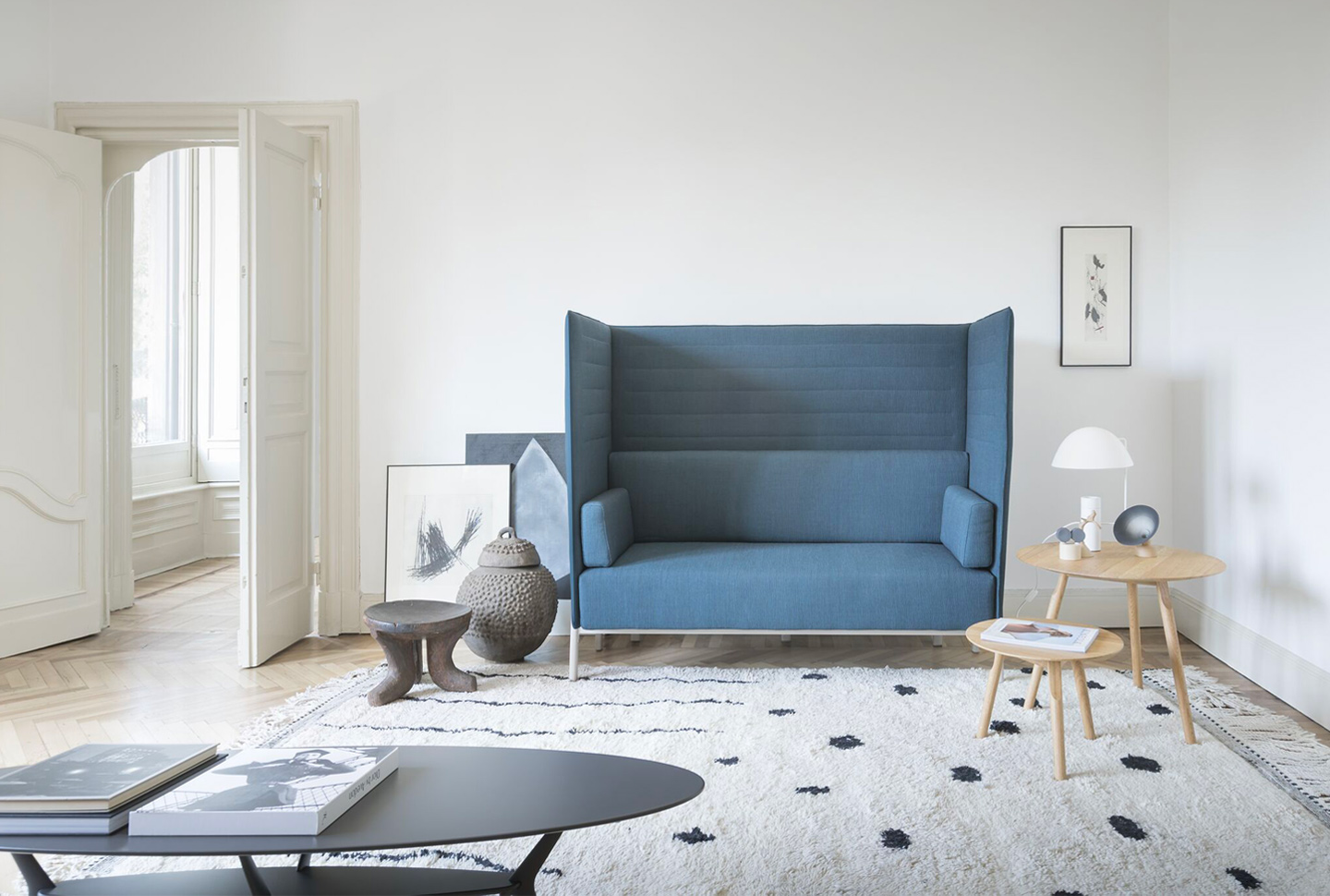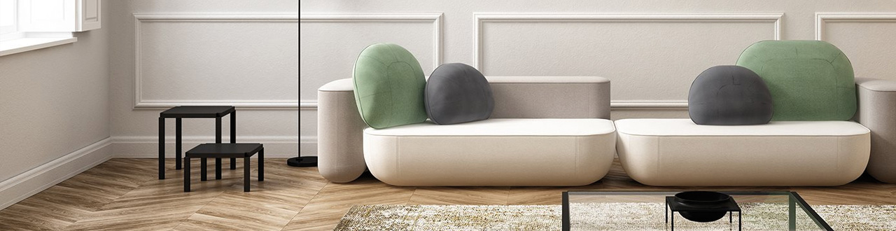 Na spletni strani http://www.archiproducts.com/en/alias smo našli še tale primer: sodobna zofa ob steni, okrašeni s klasičnimi stenskimi štukaturami. Stenske štukature dodajo stenam diskreten relief. Oko se zadrži na detajlih, kar vzbudi občutek večje stene, pozornost pa se iz izrazitih kosov pohištva preusmeri na cel prostor: