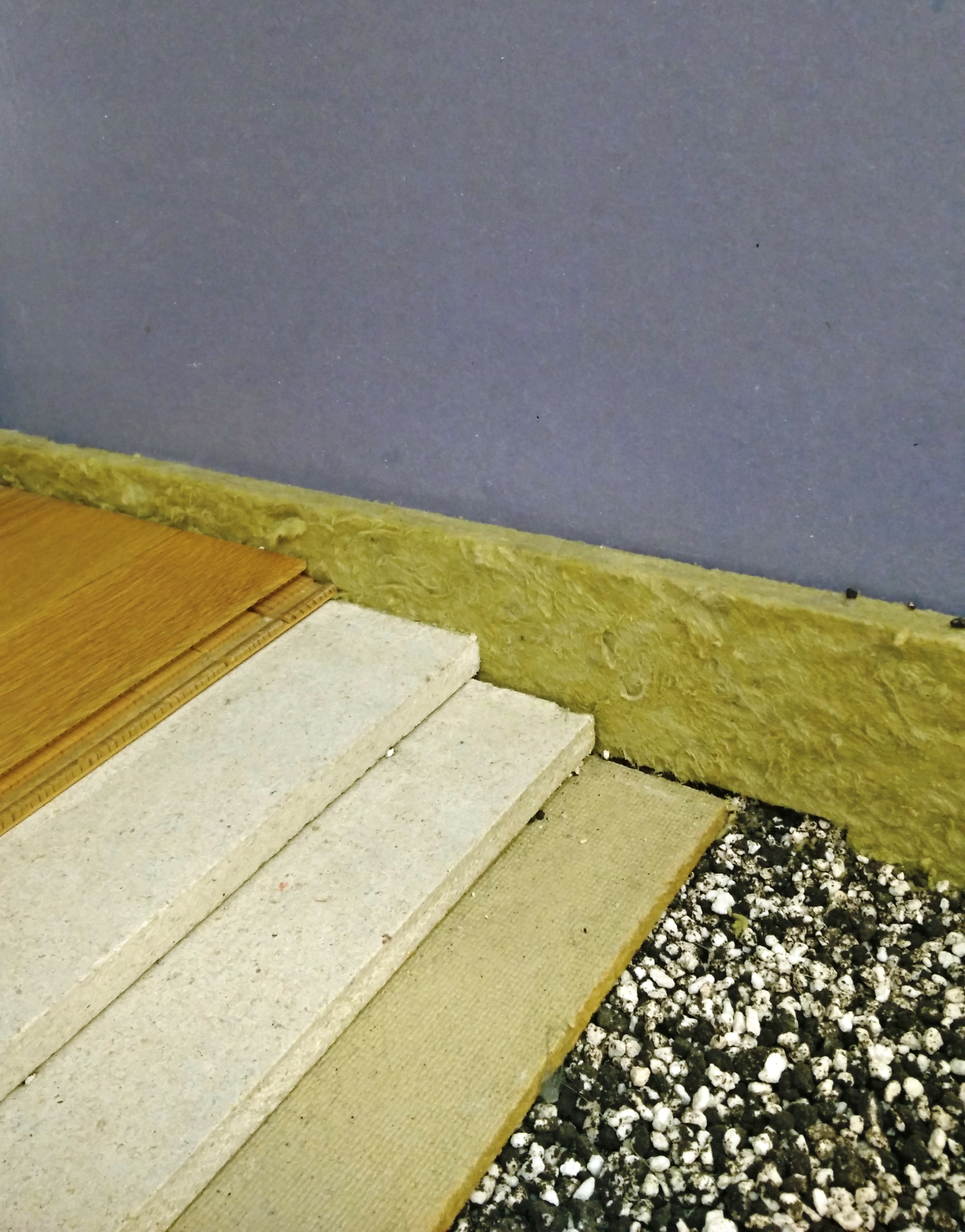 Tudi kadar je bila za zapolnjevanje votlih prostorov med stropniki uporabljena kamena volna večje gostote (>50 kg/m3), je za učinkovito zvočno zaščito potrebna dodatna plast materiala večje teže.