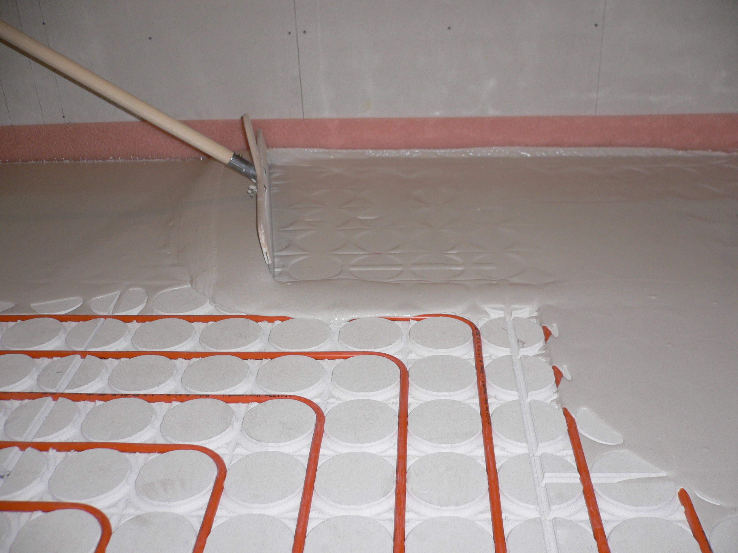 Pri obnovi se pojavi na tleh potreba po višjem sloju, ki zapolni in izravna prostor nad instalacijami. Še posebej v primeru, ko so po tleh razpeljane cevi prezračevalnega sistema, mora biti tak sloj razmeroma visok. V praksi se pogosto uporabljajo plošče iz EPS-a, XPS-a in iz penjenega betona, s katerimi pa težko obložimo predele okrog cevi. V takih primerih si lahko pomagamo z nasutji, ki so namenjena uporabi v debelejših slojih. Primer takega nasutja je vezano nasutje Fermacell, ki se z minimalnim dodatkom vode strdi v pohodno plast. Ker je dodatek vode le tolikšen, da se porabi ob kemični reakciji cementa, je po 24 urah nasutje primerno za prekritje z zaključnimi plastmi tlaka.