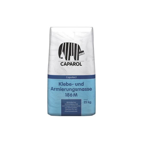 Belo fasadno lepilo Caparol Capatect 186M je suha maltna mešanica za lepljenje in armiranje izolacijskih plošč. Izboljšana za strojno uporabo.