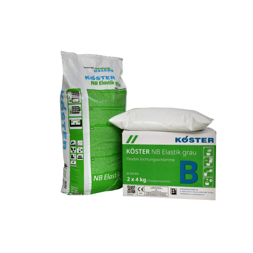 Hidroizolacija Koster NB Elastik siv je dvokomponentna cementna hidroizolaija za betonske in zidane strukture, kjer se lahko pojavijo razpoke. Odporna je na vodo pod pritiskom.