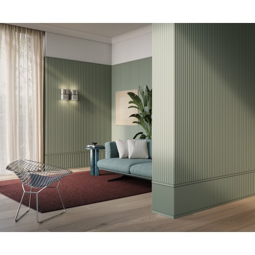 Canele L ima na panelu oblikovan večji vzorec. Paneli Canele L ponujajo edinstvene možnosti oblikovanja. Stenam in stropom dajejo privlačen 3D relief, ki je vizualno zanimiv in prijeten na otip. Odlična izbira za tiste, ki iščejo elegantno, vzdržljivo stensko ploščo, ki jo je enostavno namestiti.